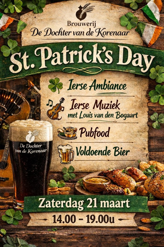 Saint Patrick's Day, ook wel bekend als St. Paddy's Day, is een jaarlijks terugkerende Ierse feestdag die wereldwijd wordt gevierd op 17 maart. De dag is gewijd aan Saint Patrick, de beschermheilige van Ierland, en markeert de herdenking van zijn dood. Voor velen is het echter vooral een dag om te genieten van het gezelschap van vrienden en familie, vaak vergezeld van traditionele Ierse gerechten en natuurlijk……BIER. Bij ons geen Guinness, maar wel voldoende donkere bieren, zoals Charbon, Sans Pardon (verschillende versies) en Embrasse. Verder kun je genieten van heerlijk PUBFOOD, FOLKMUZIEK.