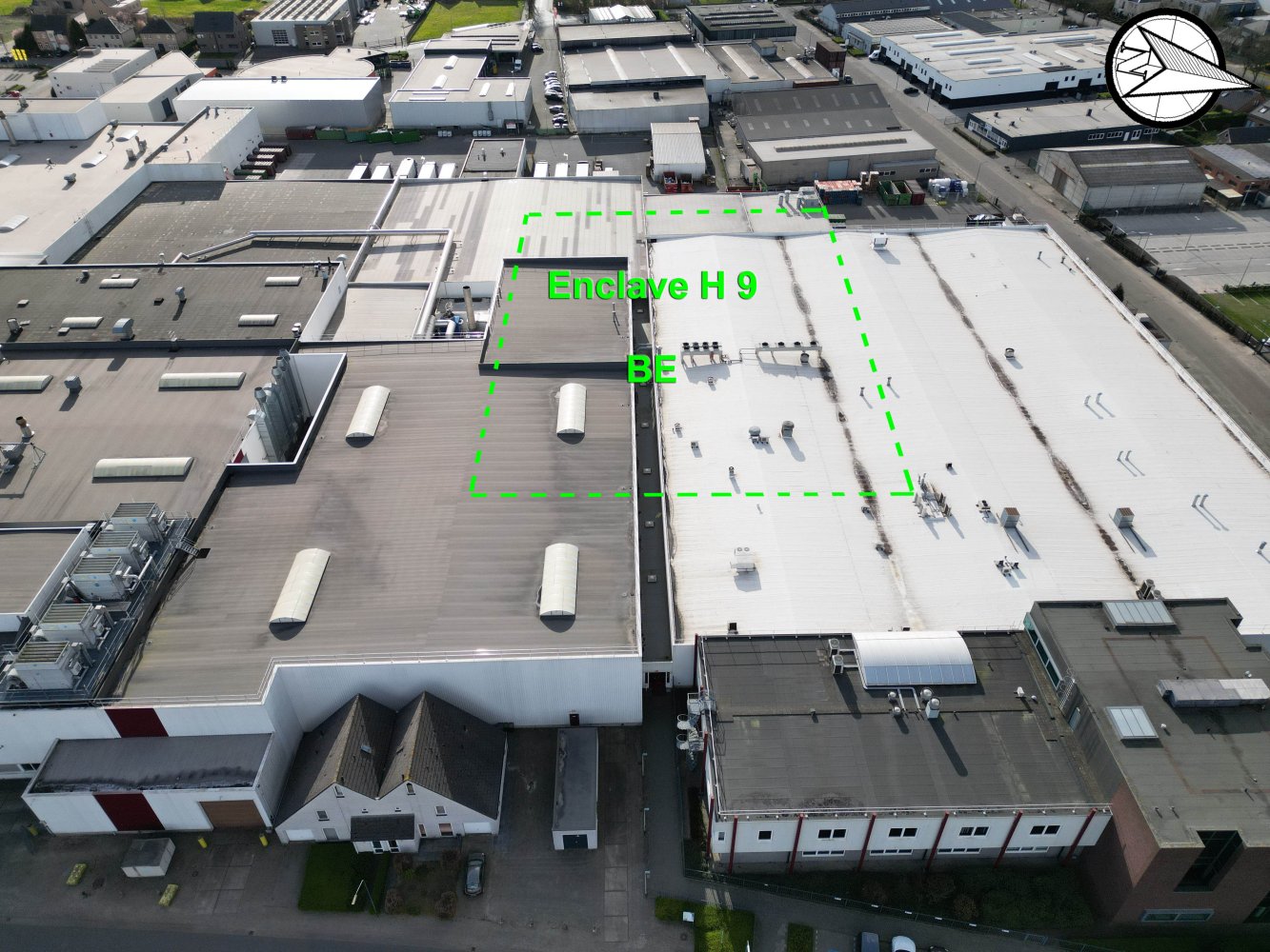 With a surface of 4.005 m² this enclave is large enough to cut through various departments of the company and even the personnel entrance. Inside the building, the national tricolours of Belgium and the Netherlands visualise the enclave’s borders.