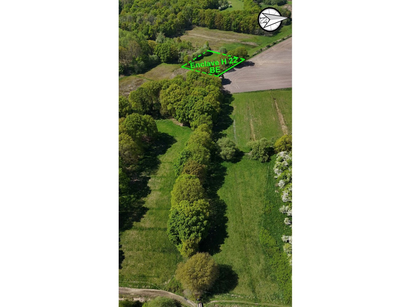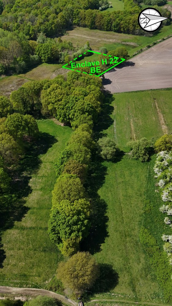 H22 is the second smallest enclave in the world and has the shortest enclave perimeter in the world: 209 metres. The enclave covers a third of a rectangular meadow in the far west of the municipality of Baarle-Nassau and is located far from the public road. It is located in the Withagen, southwest of the church village of Ulicoten. The square plot consists of a lawn that leans against the Pools Heining. This is a watercourse that rises in the Hollandse Bossen and flows between the hamlets of Oude Strumpt and Nieuwe Strumpt towards Meerle.
